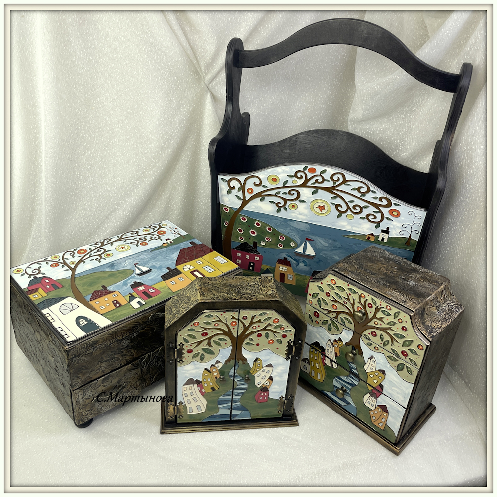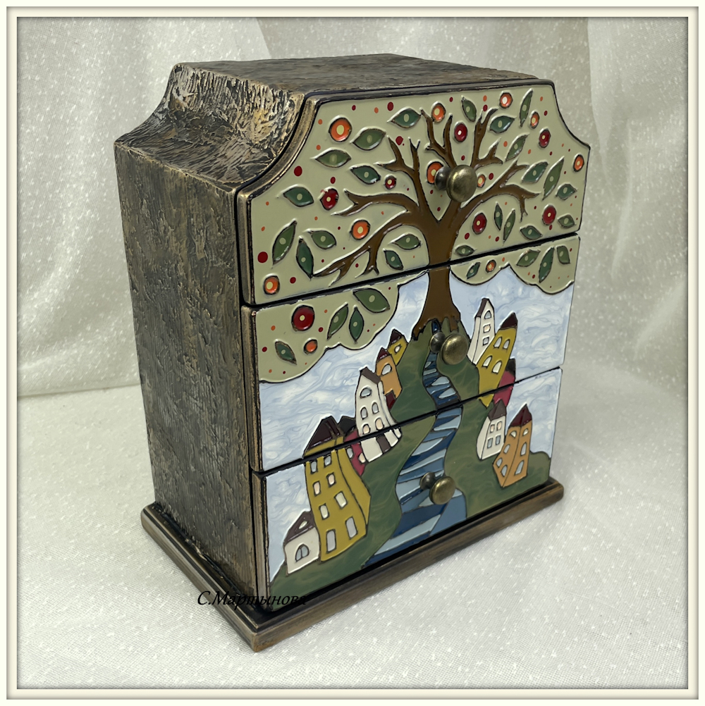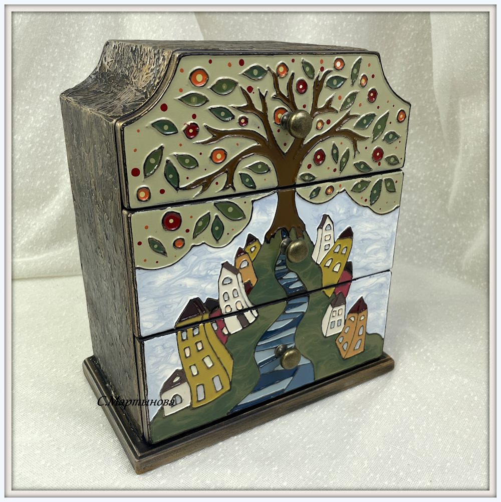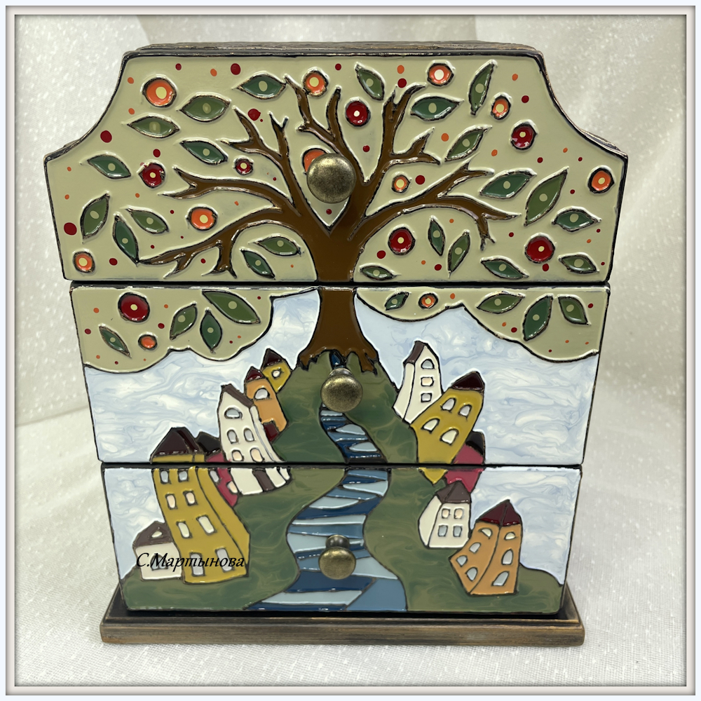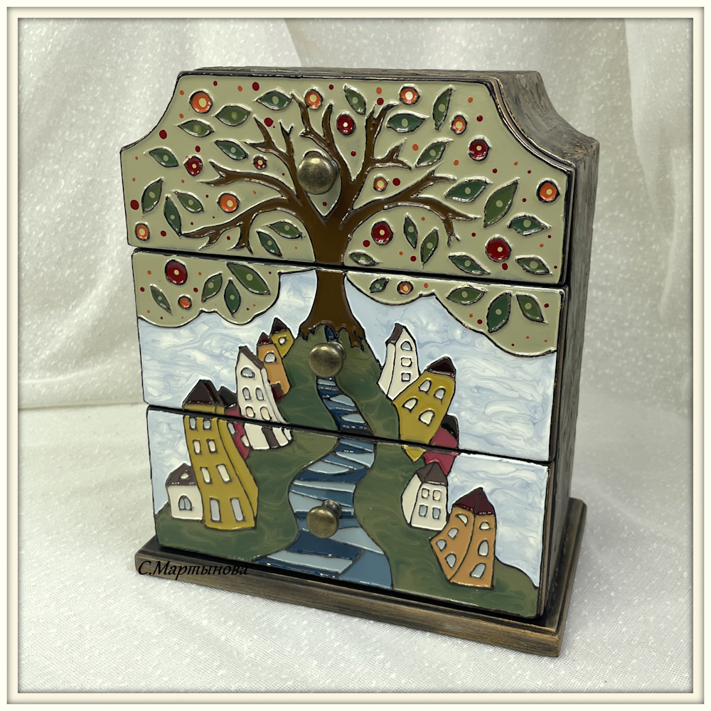 Полностью ручная роспись в авторской технике Имитации перегородчатой эмали лаковыми красками SMAR