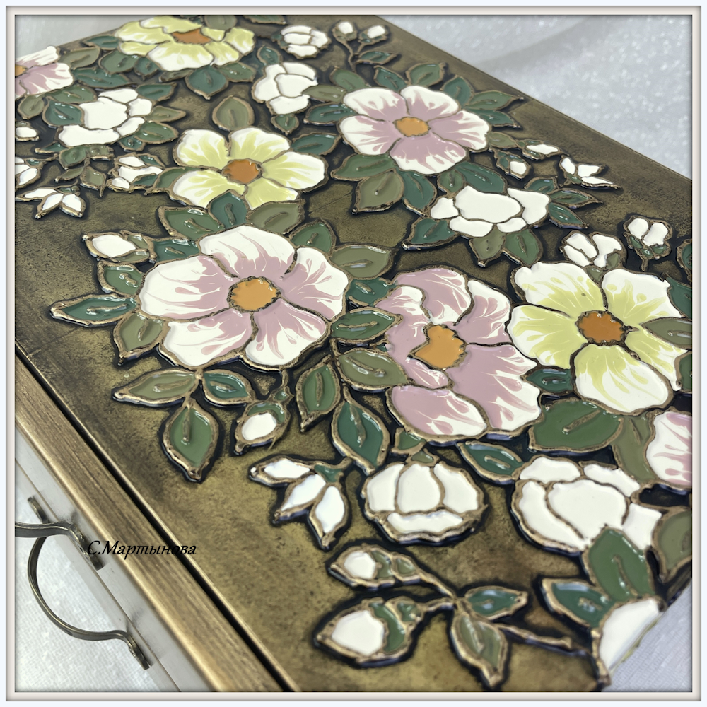 Полностью авторская ручная роспись в технике имитации перегородчатой эмали.