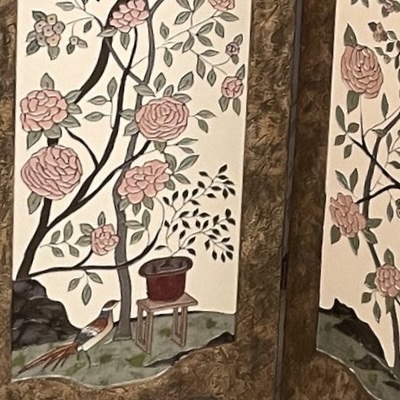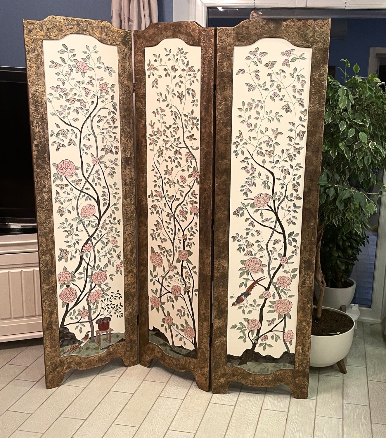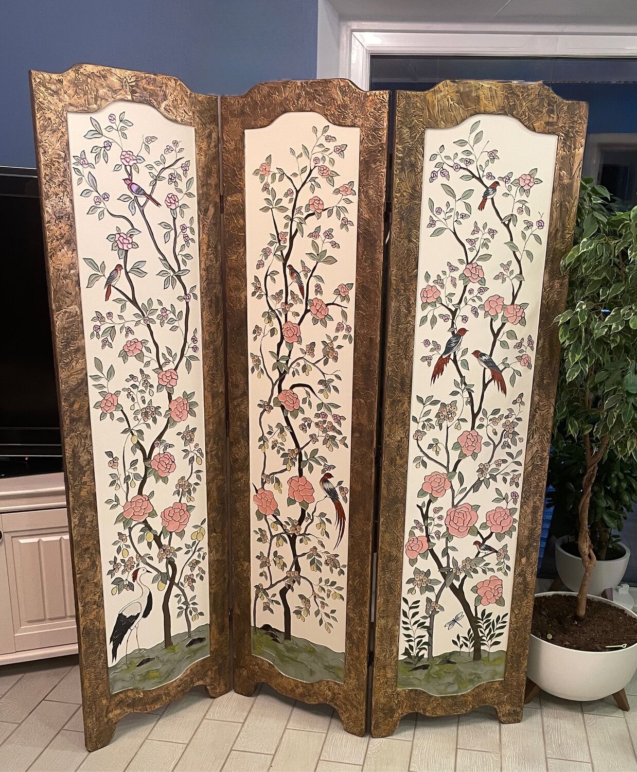 Уникальная двухсторонняя Интерьерная ширма с ручной росписью по авторской технологии, роспись с двух сторон на 3 створках