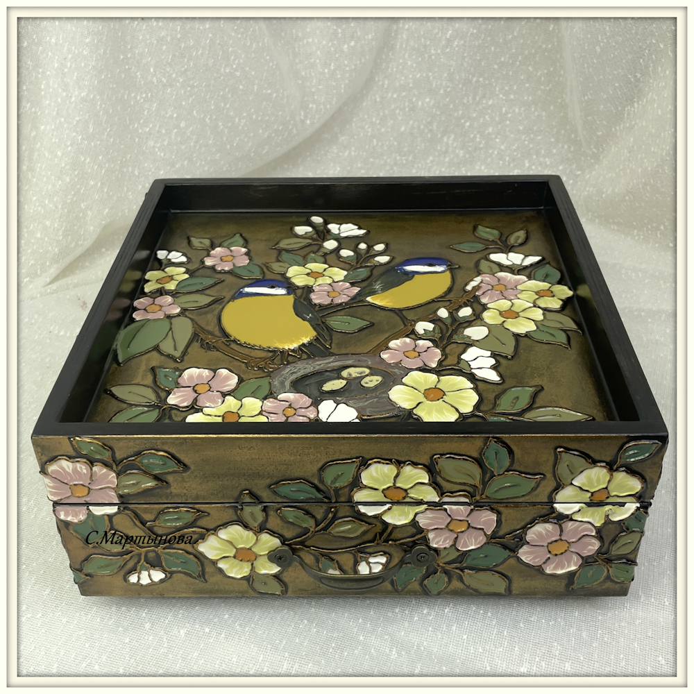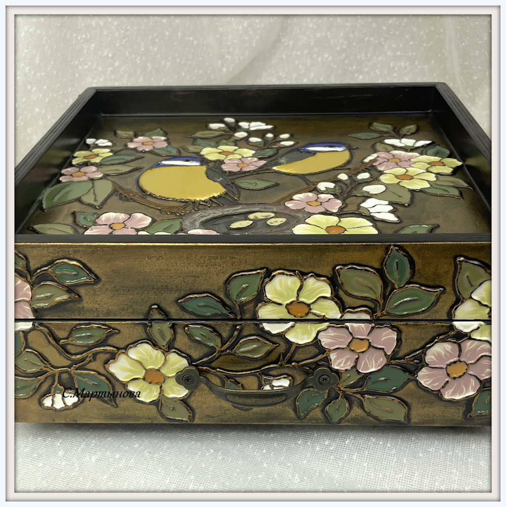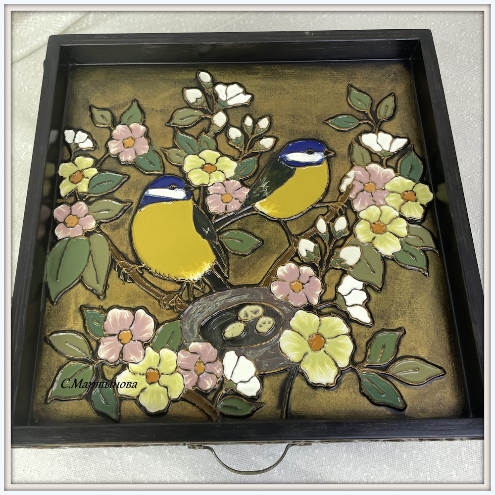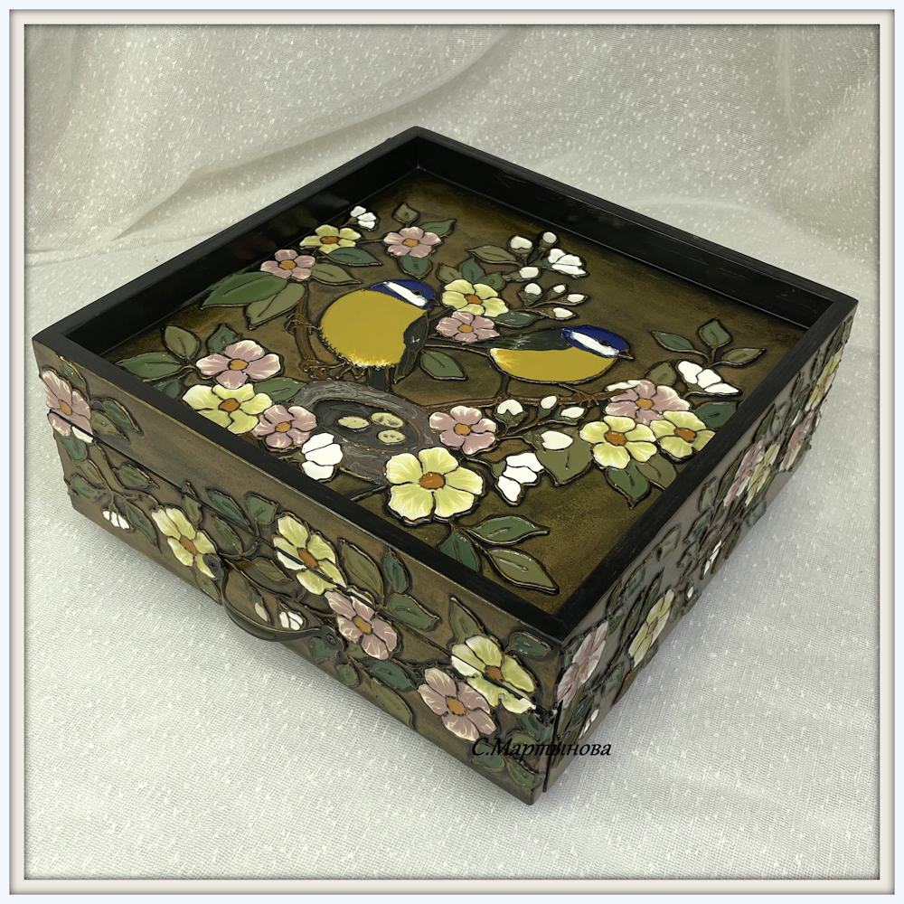 Шкатулка-поднос Нежные синички