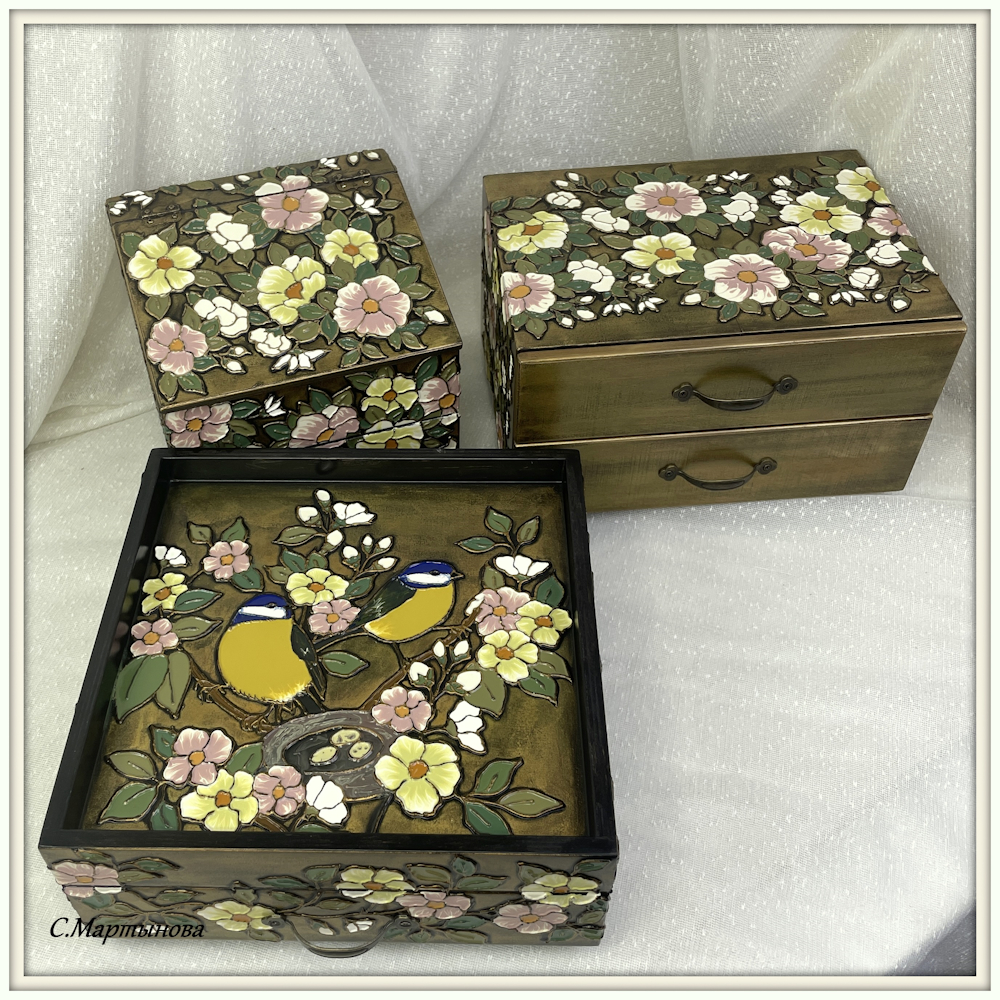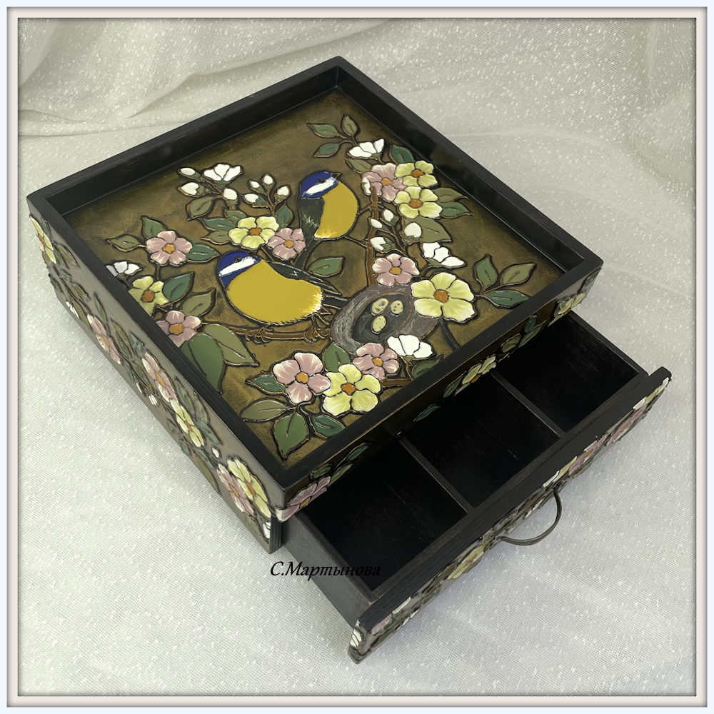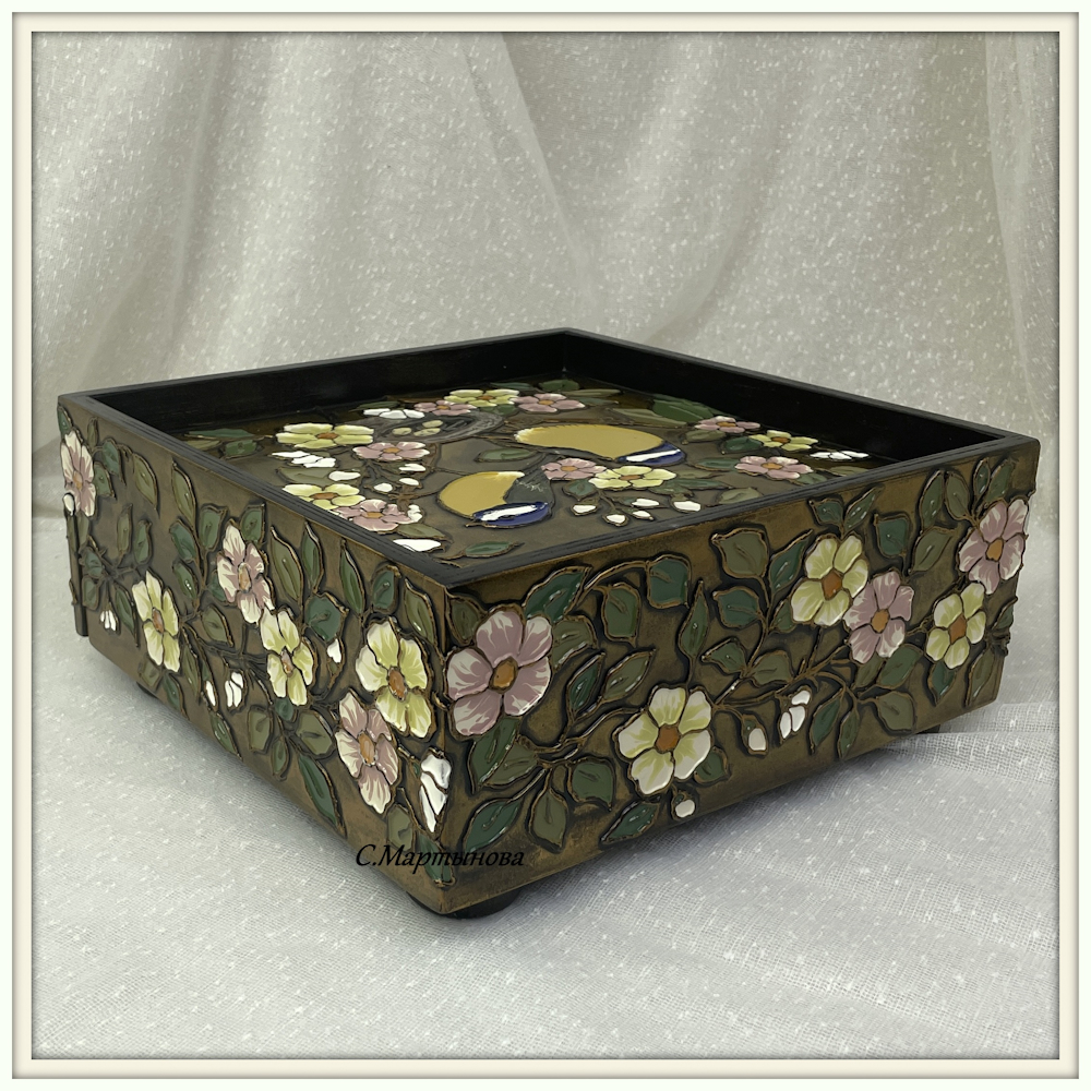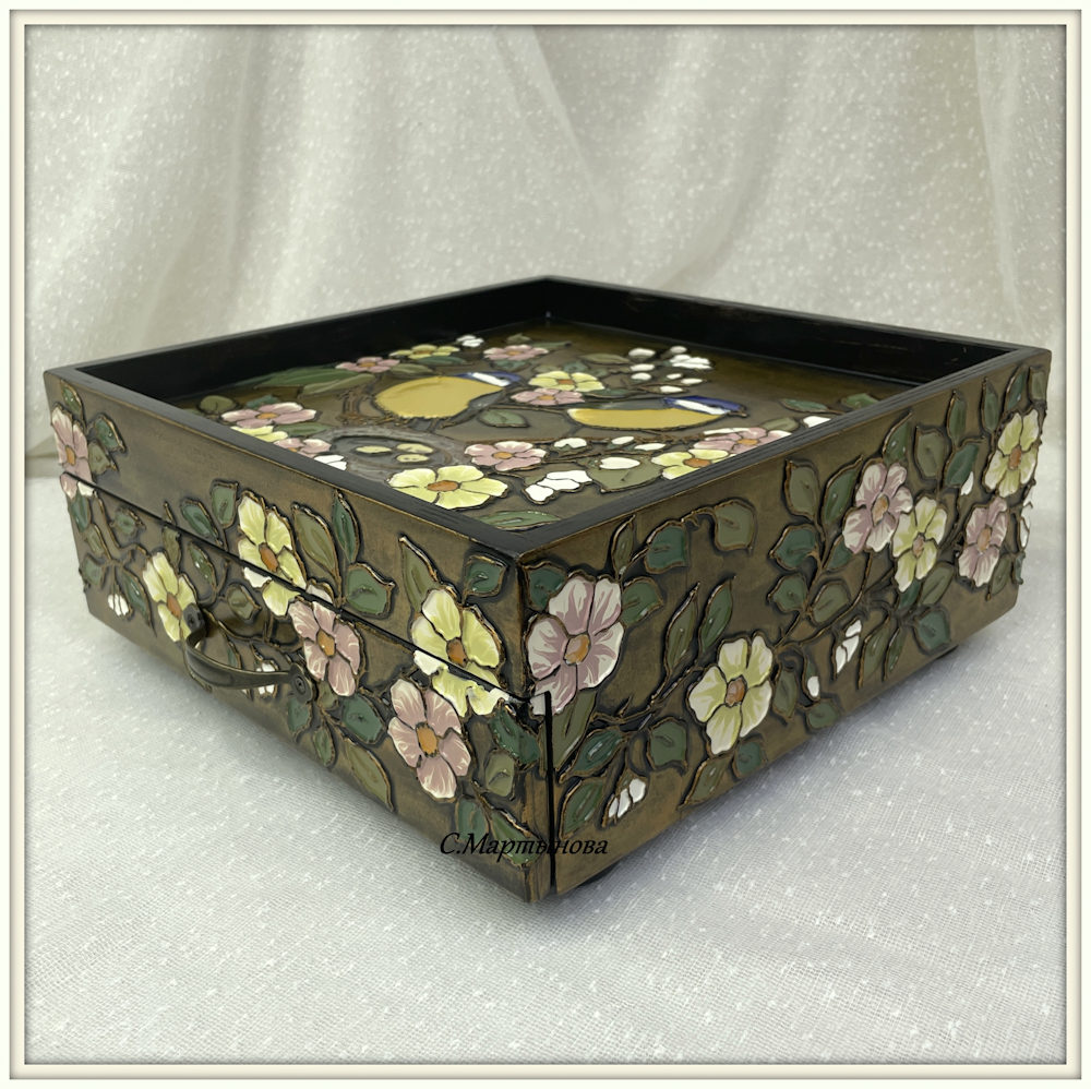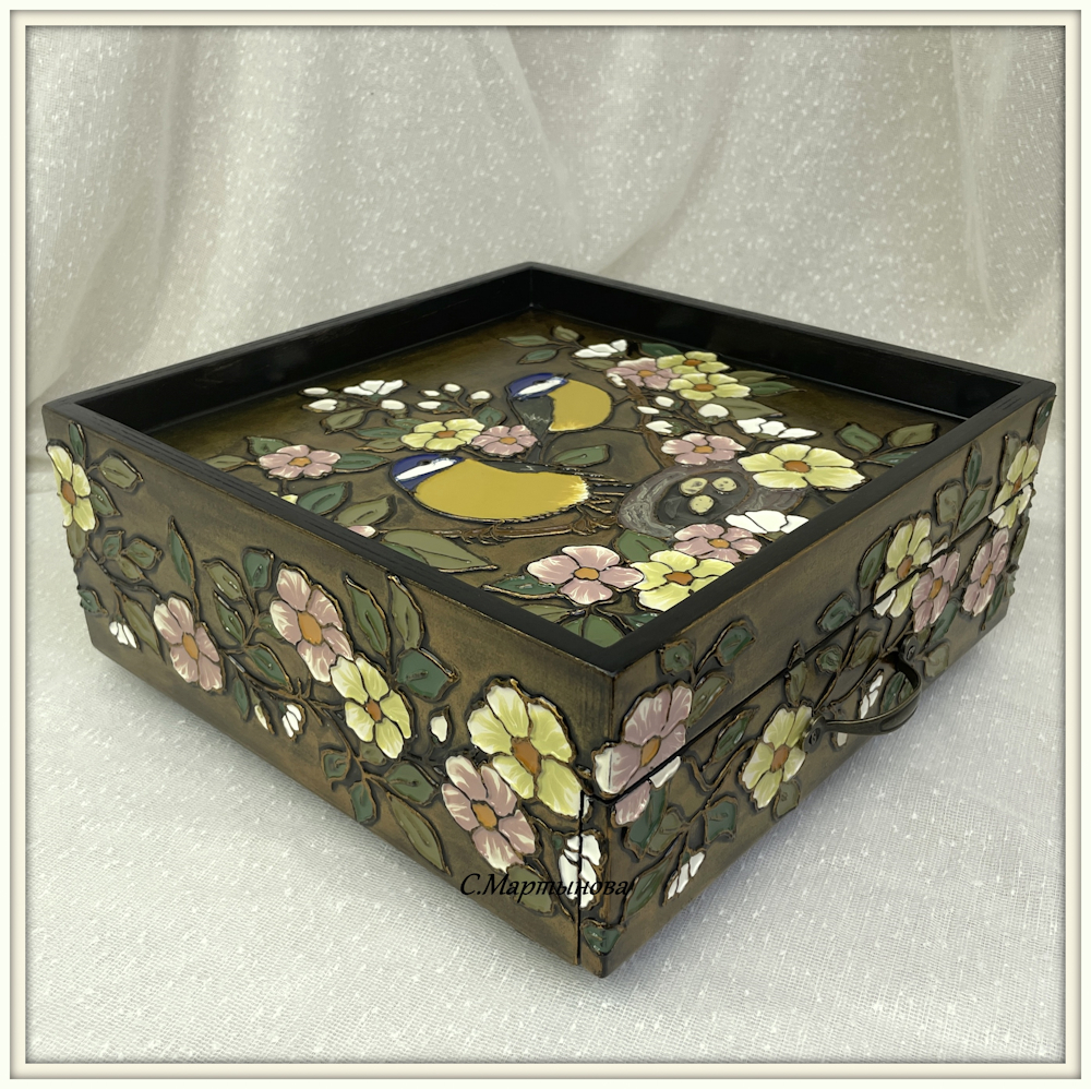 Шкатулка-поднос Нежные синички